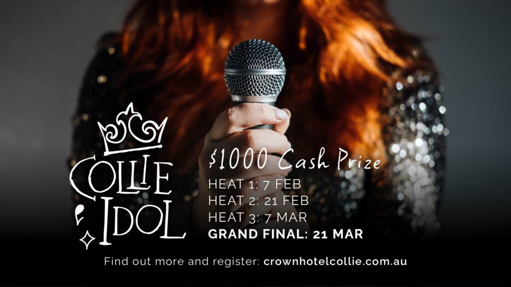 Collie’s iconic, longest-running amateur singing showdown! Whether you’re belting out your favourite tune or cheering from the crowd, this is the musical night to light up your calendar.